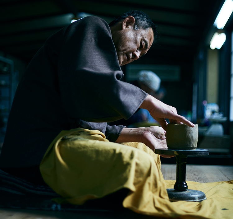 五代続く窯元で、茶の湯の道具を中心に、京都らしい華やかな表現を得意とする。1969年・京都・清水坂生