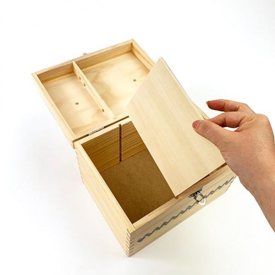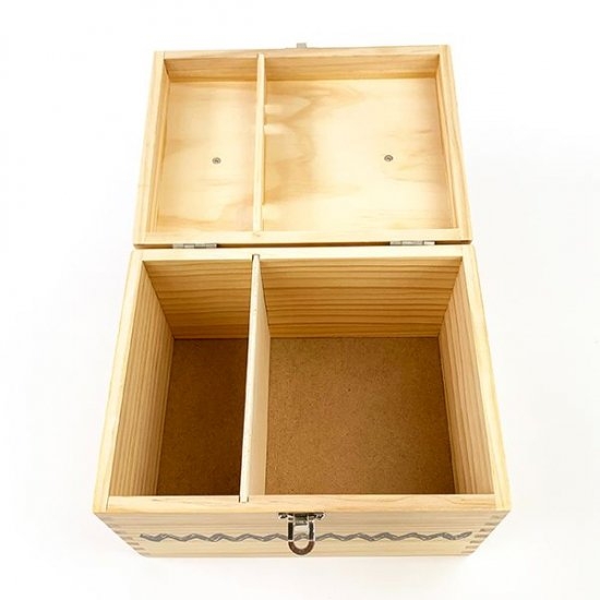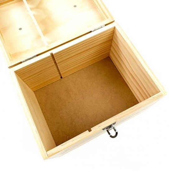 蝶番が付いているのでフタ部分がパカっと開きます。なかは結構大容量で、お薬箱にしたり裁縫箱やメイクボックスにしてみたり、いろいろ使えて便利ですよ♪