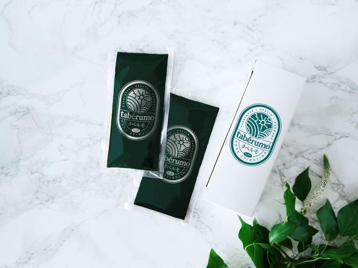 「スピルリナ」とは藻類の一種で、約35億年前に誕生した地球最古の植物とされます。「タベルモ」は生の状態で製品化した、国内で唯一の生スピルリナです。海外を中心に「スーパーフードの王様」と呼ばれ、ビタミン・ミネラル・たんぱく質などの5大栄養素をはじめ、 60 種類以上の栄養素を含む栄養価に優れた食品です。また、人口増加に伴い、早ければ2030年に世界中でたんぱく質不足が起きることが懸念されています。スピルリナは単位面積あたりのたんぱく質生産性が大豆の20 倍以上と高く、未来のたんぱく質不足への対応(食糧危機対策)が期待できる「持続可能性の高い食糧」として、世界的にも期待されています。