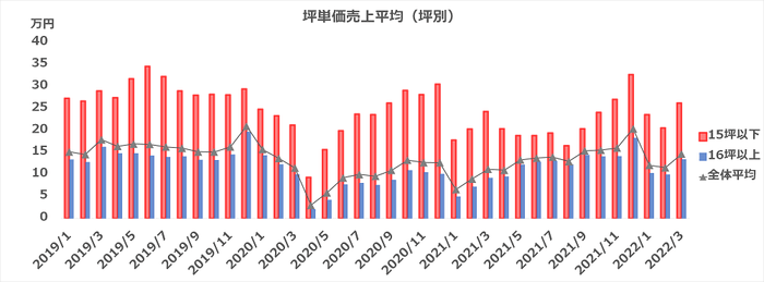 一方で、16坪以上の店舗は平均値を30%下回る月もありました。