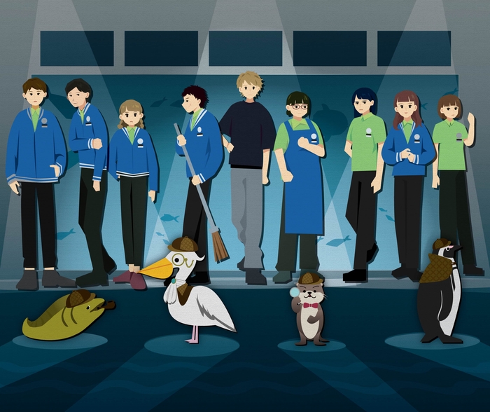 サンシャイン水族館で実際に展示されている、ウツボ・カワウソ・ペンギンをモチーフとしたキャラクターが登場します。