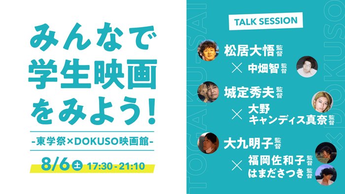 「みんなで学生映画をみよう!~東学祭×DOKUSO映画館~」 有名監督と若手監督によるトークセッションイベント開催決定!