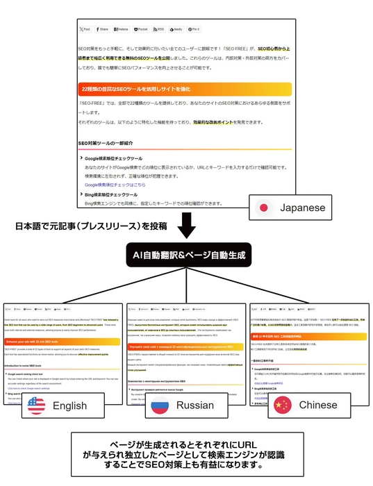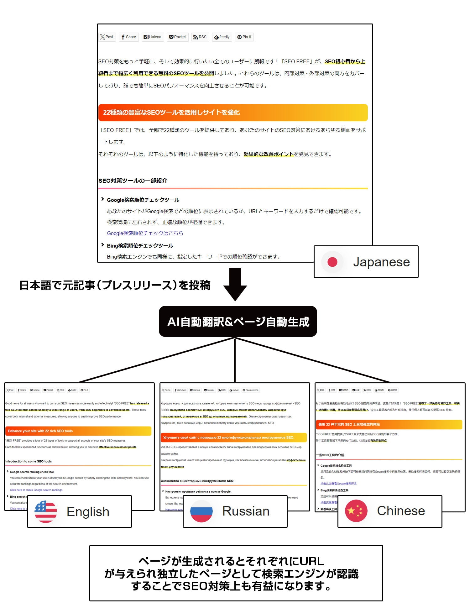 プレスリリース自動生成: 投稿と同時に多言語ページが生成