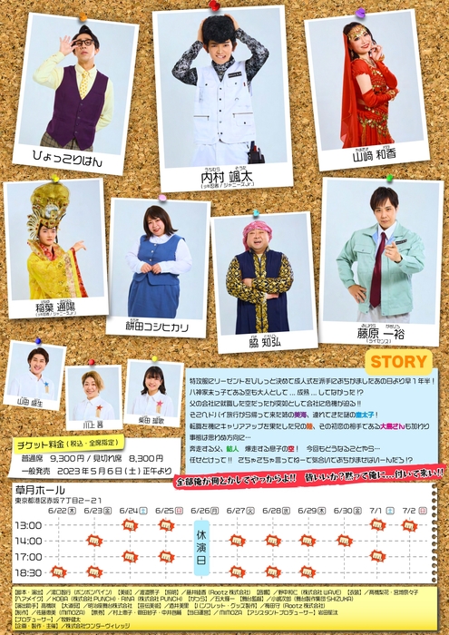 株式会社ワンダーヴィレッジ(東京都港区、プロデューサー牧野健太)主催による、舞台『最強で最⾼の⾃慢の息⼦ Season2』が2023年6⽉22⽇(⽊)~7⽉2⽇(⽇) に草⽉ホール(東京都港区赤坂7丁目2-21)にて上演されます。チケットはカンフェティ(運営:ロングランプランニング株式会社、東京都新宿区、代表取締役:榑松 大剛)にて5月6日(土) 12:00より一般販売開始です。