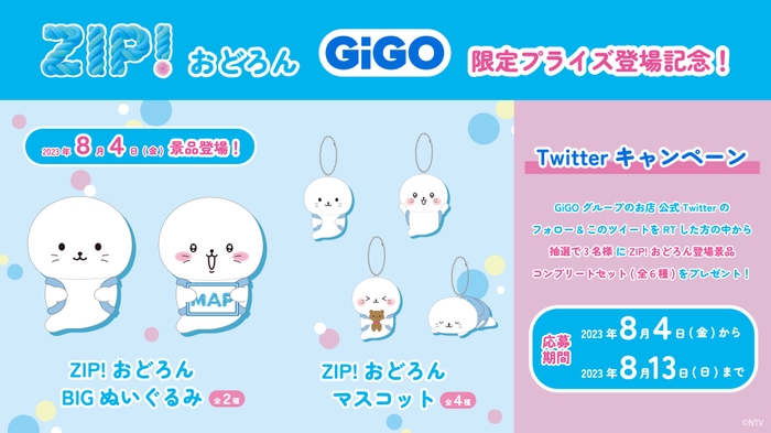 GiGOのお店公式アカウント(https://twitter.com/GENDA_GiGO )をフォローの上で、該当のツイートをリツイートされたお客さまの中から抽選で3名様に「発売商品(計6点)コンプリートセット」を進呈いたします。