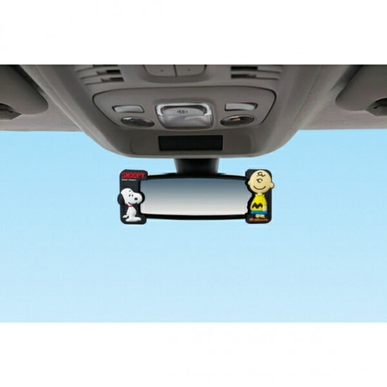 こんな風にルームミラーの両端に取り付けます。これだけで一気に車の中がスヌーピー空間に早変わり♪付属の両面テープで好きな場所に貼れるので、サイズが合えば他の場所にも♡