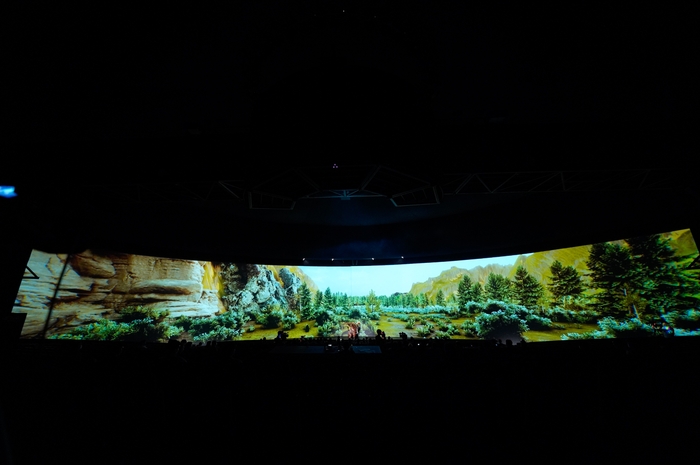 今回、前方の席で観ると、アトラクティブで恐竜が間近に迫ってくることを体感できます。後方の席では、全体像が見えるために中生代の風景の中で恐竜が動く姿が楽しめます。全く違った恐竜の姿が観られるので、ぜひ、どちらの席でも観てもらえたらと思います。