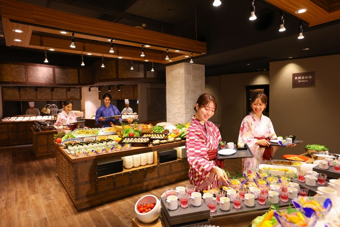 開放感あるデザインが特徴のゆとりあるレストランでは、ライブキッチンから提供される出来たての料理に信州のソウルフードや銘柄鶏も味わえる豪華グルメバイキングをご堪能いただけます。