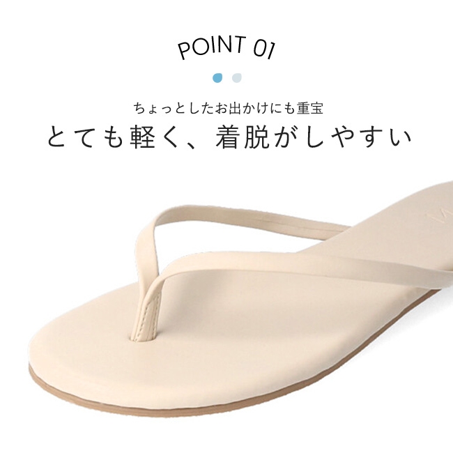 ■華奢なストラップが上品でヌーディーな足元を演出するフラットトングサンダル