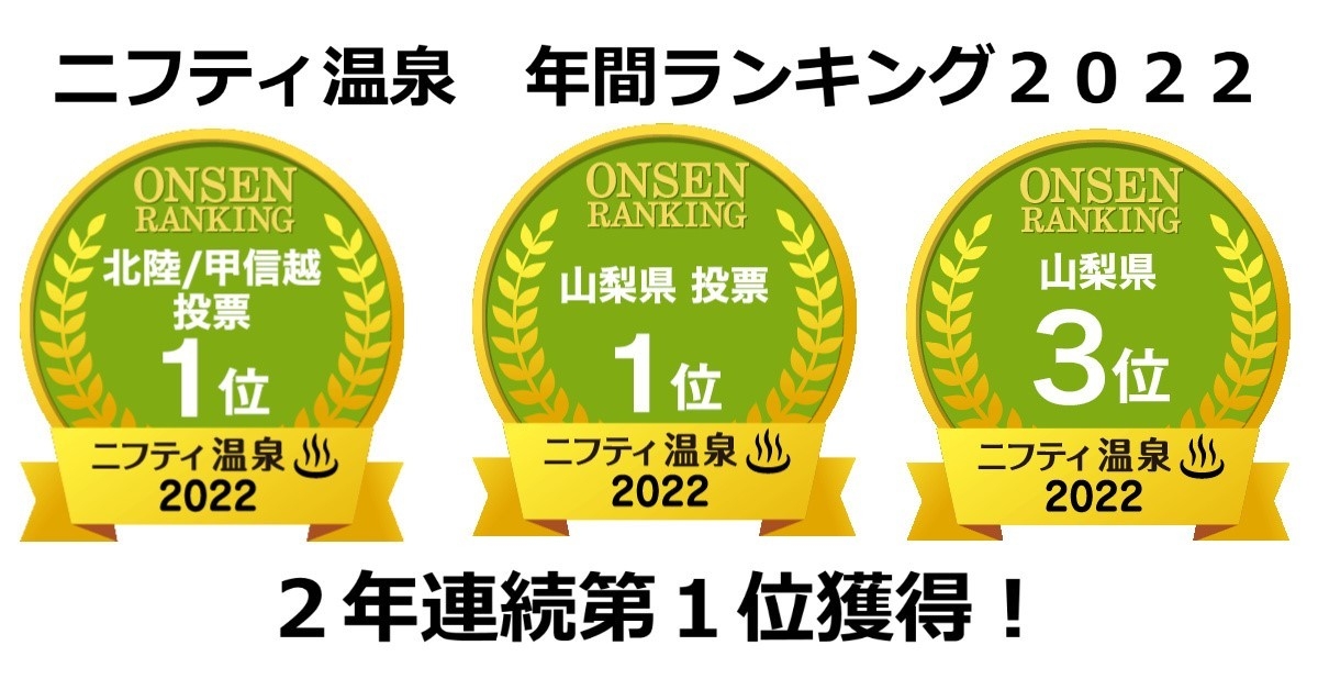 株式会社 湯ーとぴあ(所在地:山梨県甲斐市 代表:早川 善輝)が運営する「竜王ラドン温泉 湯ーとぴあ」は、「ニフティ温泉ランキング2022【ユーザーが選んだ人気温泉ランキング】」において、「北陸・甲信越エリア」「山梨県」の双方のエリアで第1位を獲得いたしました。