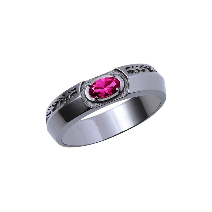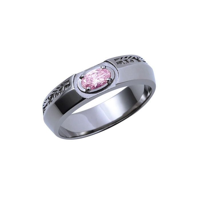 吉井の指環(刃)は上品なブラックコーティングを施したナイフエッジの型に、オーバルカットのイメージカラーストーンを配しました。存在感がひき立つデザインです。