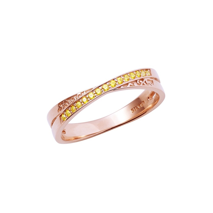 坪内の指環(鞭)はレトロなピンクゴールドコーティングを施した透かし柄の型に、
