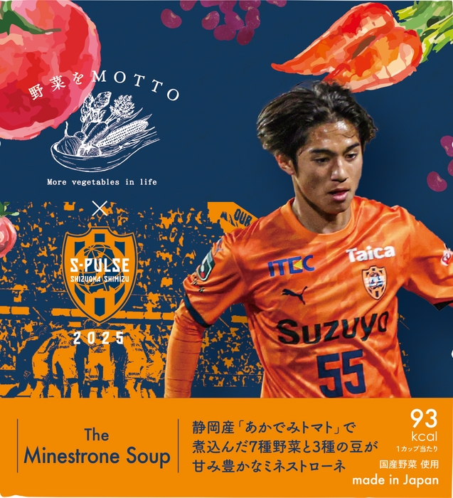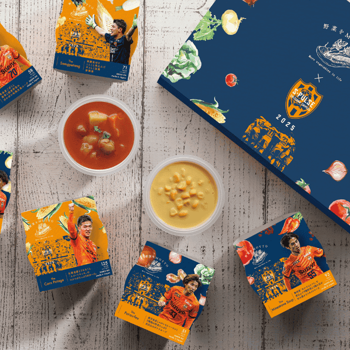 清水エスパルスの“推し”選手6名がパッケージに登場! 国産野菜スープブランド「野菜をMOTTO」とコラボした 特別セットを2025年限定発売