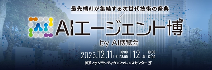 AIポータルメディア「AIsmiley」を運営する株式会社アイスマイリー(東京都渋谷区、代表取締役:板羽 晃司)は、2025年12月11日(木)・12日(金)に「AIエージェント博 by AI博覧会」を開催します。