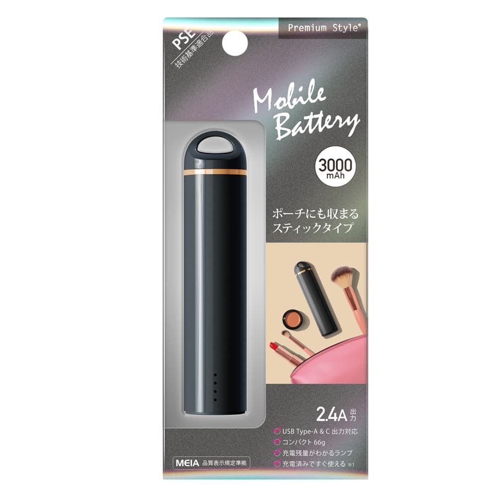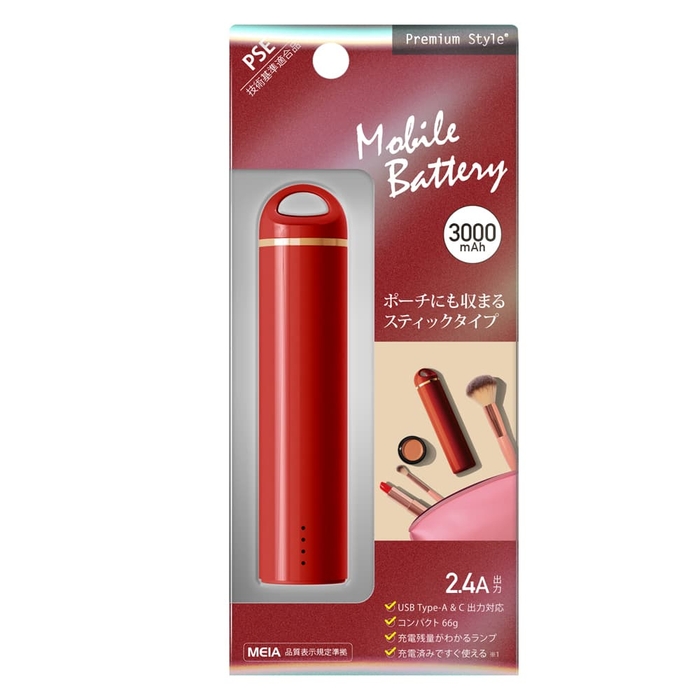 スマートフォンやデジタルオーディオ端末等のアクセサリーブランド『Premium Style』の企画・製造・販売を手掛ける株式会社PGA (本社:神奈川県横浜市都筑区、代表取締役:黒木 光) は、このたび光沢感ある筐体デザインでポーチにも収まる軽量コンパクトなスティックタイプのモバイルバッテリーを5色展開で株式会社PGAが3月13日から新発売いたします。