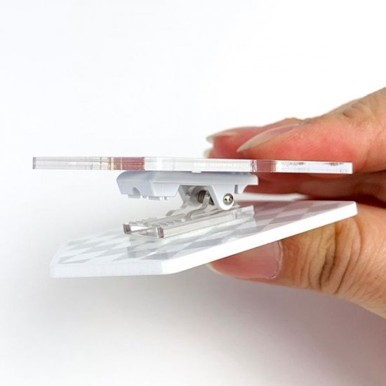 クリアなアクリル製で、サイズは55×43mm。