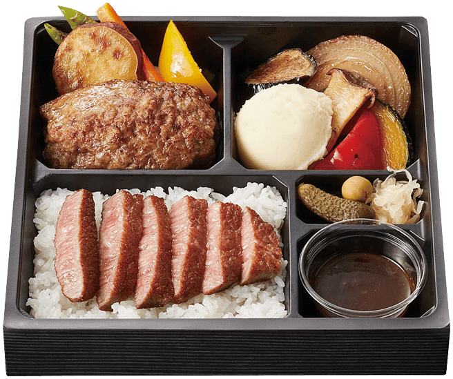 肉屋こだわりのオーダー式弁当を販売いたします。高質な黒毛和牛を使用したステーキやハンバーグなどを、ご注文をいただいてから焼き上げます。