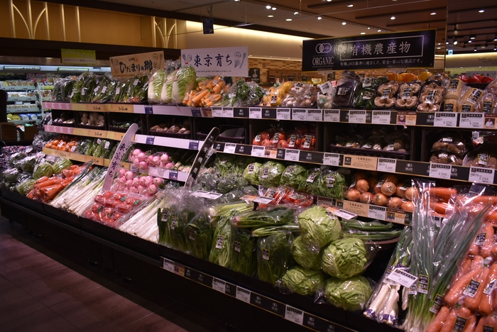 通常店の1.4倍である約1,000種類の野菜・果実を取りそろえます。生産者の顔が見える有機農産物コーナーも導入いたします。