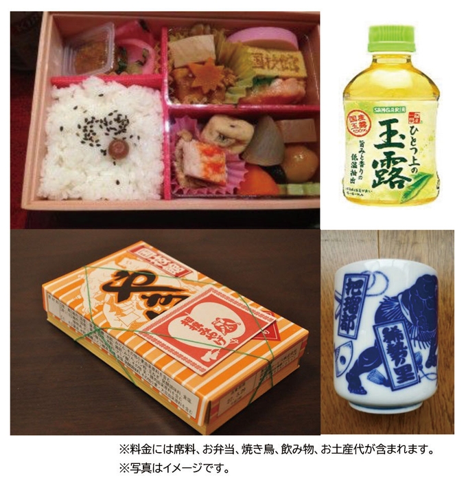 ※料金には席料、お弁当、焼き鳥、飲み物、お土産代が含まれます。