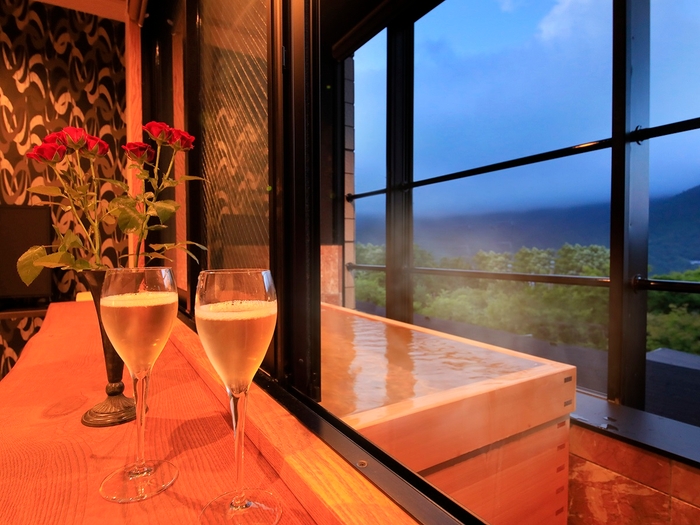 10周年記念プランではオリジナルボトル赤ワインや箱根土産のプレゼント、貸切ジャグジーまたは岩盤浴の利用が1回無料など様々な特典をお愉しみいただけます。