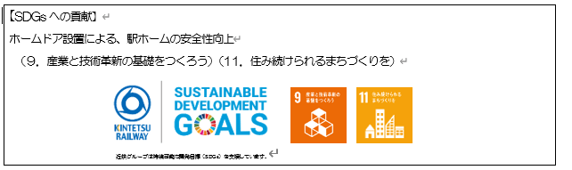 当社線内のホームドア設置では、今回が東海エリアで初となり、大阪阿部野橋駅、現在工事中の鶴橋駅に続き3駅目になります。