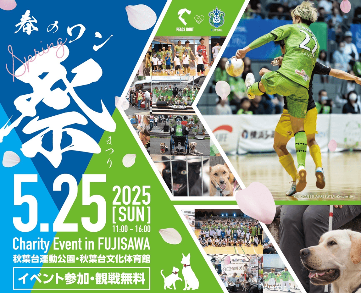「春のワン祭り」は犬猫の殺処分ゼロを目指す団体「PEACE JOINT」が主催し、湘南ベルマーレフットサルクラブとのコラボレーションによって開催されるイベントです。