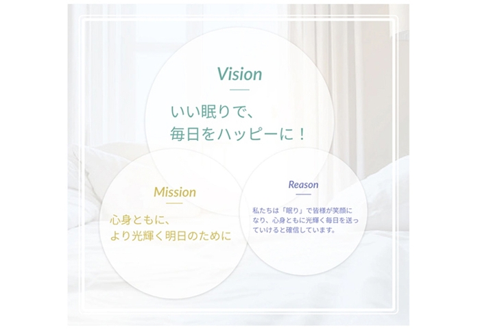 私たちは「いい眠り」で皆さまが笑顔になり、心身ともにより輝く毎日を過ごせる活動を続けています。
