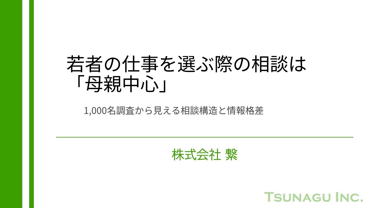 若者の仕事を選ぶ際の相談は「母親中心」 ―1,000名調査で見えた課題