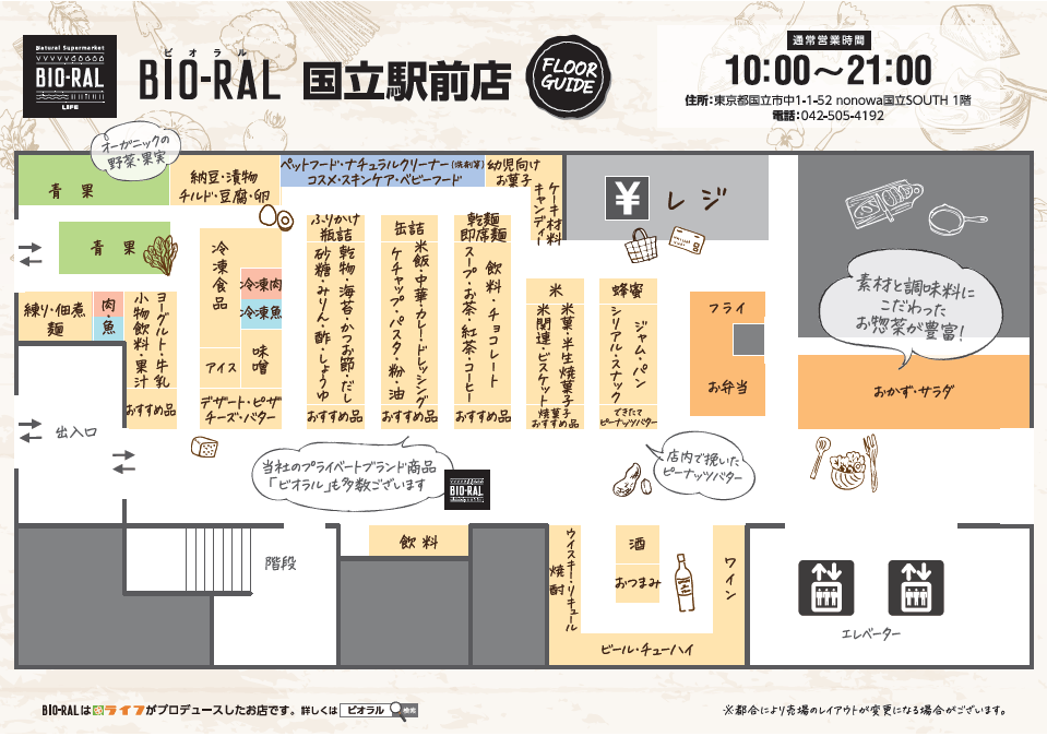 “おいしい” “ワクワク” “ハッピー” をお届けするライフコーポレーションは、3月27日(水)にJR中央線「国立」駅南口に新しく建設された商業ビル「nonowa 国立SOUTH」のキーテナントとして、「ビオラル国立駅前店」をオープンいたしました。