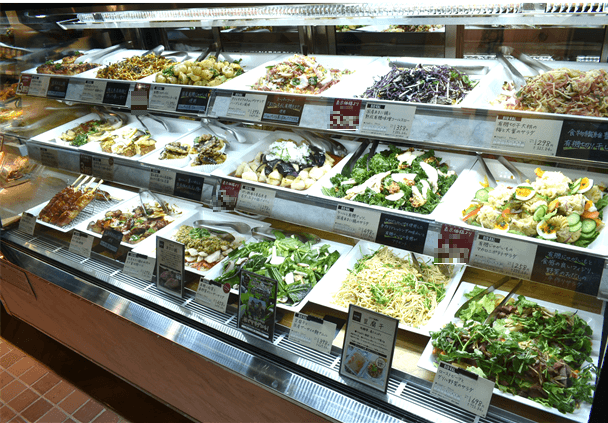 国立駅からすぐという駅前の立地で、バスの利用者も多く、周辺には一橋大学・東京女子体育大学など学校が多い地域のため惣菜のニーズが高いと考え、惣菜・弁当・サラダなど種類豊富に取りそろえています。