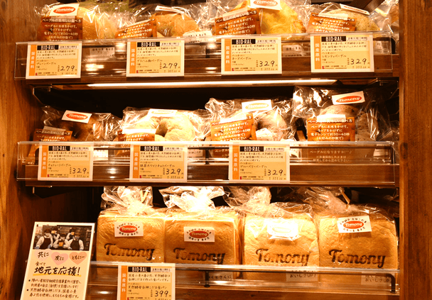 パンコーナーには、国立市にある「パン工房ともにー」のパンが並んだコーナーを導入。パン職人指導のもと、障がいがある方が丁寧に焼き上げるこだわりパンです。国産小麦「春よ恋」や天然酵母「白神こだま」を使用したもちもち食感のパンが人気!