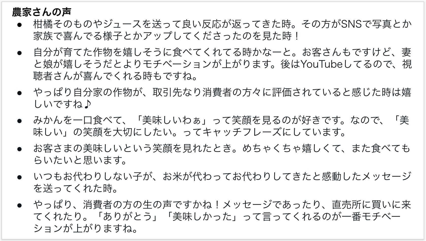3)消費者の反応は生産者の励みに