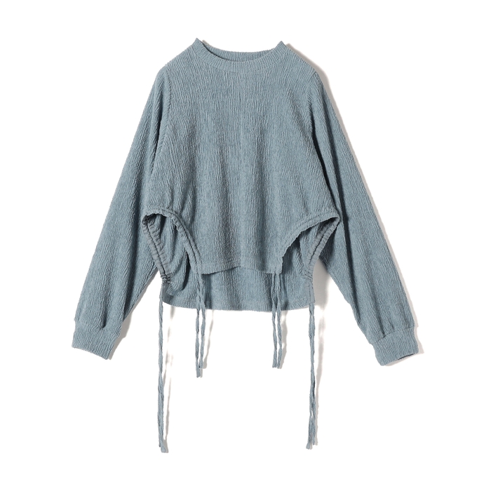 シンプルながらも股下や腰回りのシルエットバランス、背面のギャザーに拘った一着。