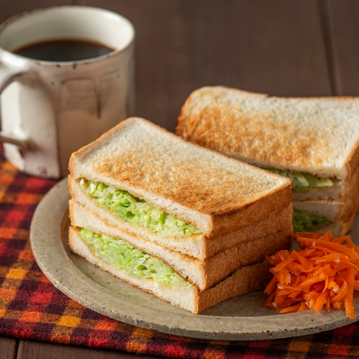 袖山さん:本当に、千切りにしたキャベツを少しだけレンチンしてしんなりさせて、マヨネーズと粉末だしで味付けして挟んだだけ。簡単でしょ?