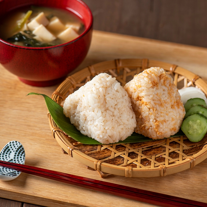 袖山さん:例えば、味付けせずに炒ったたまごと枝豆を混ぜて握っただけでも、ご飯に味がついているから、充分美味しいですよ!もちろん、梅や、大人向けなら久世福商店の「しゃけしゃけめんたい」と一緒に混ぜてもいいですね!しゃけの旨みをだしの旨みが引き立ててくれます。ついでにお味噌汁も作りました!どうぞ召し上がれ!