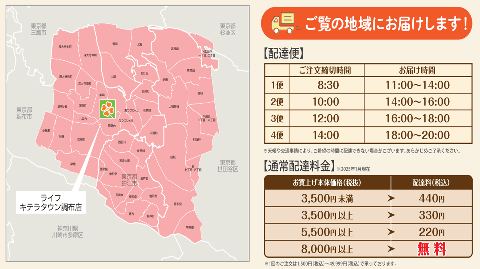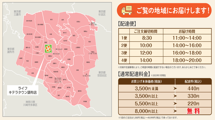 “おいしい” “ワクワク” “ハッピー” をお届けするライフコーポレーションは、2月12日(水)から「キテラタウン調布店」でライフネットスーパーのサービスを開始しました。