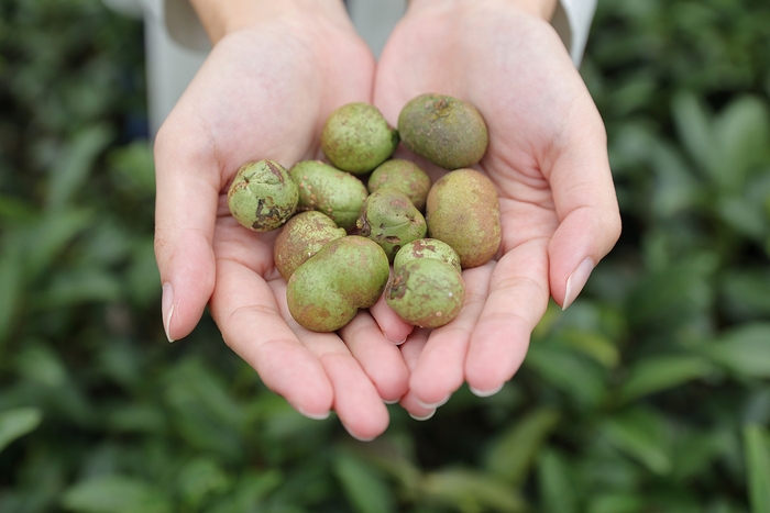 この製品は、自然の中で育まれた茶の花と葉を主成分としたナチュラルスキンケア商品。原料となる茶の花と実が獲れる京都府南山城村は人口わずか2600人で、見渡す限り茶畑に囲まれている地域です。