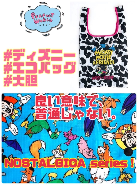 ディズニーがエコバッグを作るとこうなる。やっぱり良い意味で”普通じゃない”よね♪大胆でカラフルなNOSTALGICAシリーズ。