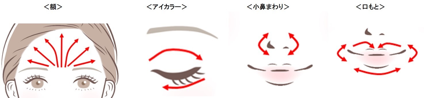 シミやクマを簡単にカバーするポイントは「カバーしたい部分(範囲)よりもひとまわり小さめにコンシーラーを使用する」ことです。ひとまわり小さめにつけたら、肌との境目を放射線上に指でポンポンとなじませるとコントラストが目立たず、自然にカバーすることができます。