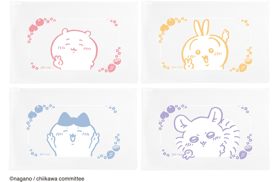 今作は「フルーツ」をテーマにしたデザインとなっております。マスク本体には、ちいかわたちとちっちゃなフルーツが、エンボスデザインで施されており、癒しとかわいさがぎゅっと詰まったデザインです。マスクや小物を入れるのにも便利なスライダー付ポーチが、全4種でいずれかが入っています。個包装フィルムにも、ちいかわのプリントがされており、取り出すのが楽しみになるマスクセットです。