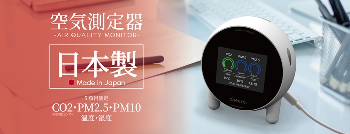 cheeroブランドを展開するティ・アール・エイ株式会社は、2021年12月14日(火)より、CO2/PM2.5/PM10の濃度、温度・湿度を計測可能な日本製空気測定器を発売します。
