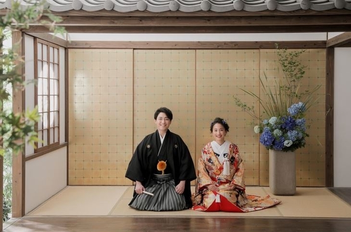また、和室スタジオにあたる屋内庭園スタジオでは、ウェディングフォト業界初(※当社調べ)となる、大型LEDディスプレイが新登場!天候に左右されず、白無垢や色打掛などの花嫁姿を艶やかに際立たせる四季折々の季節の映像を映し出し、ロケーション撮影さながらの写真を残せます。