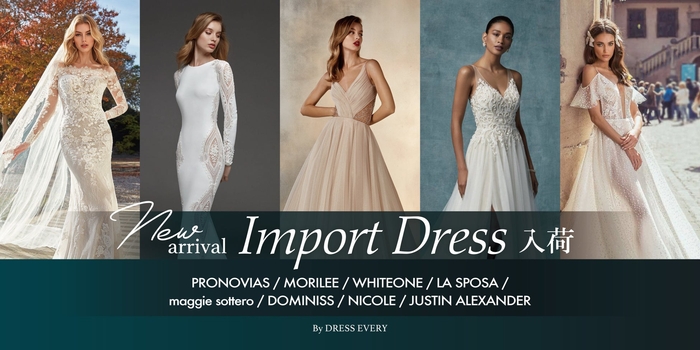 当スタジオでご用意している衣装は、洋装・和装ともに100着以上の圧倒的な品揃えで、洋装はクラシカルなものからトレンドを取り入れたものまで、和装は実際の婚礼で使用される格式高い着物を採用。また、生地から細部のディテールまで追求したオリジナル衣装も数多くご用意しております。