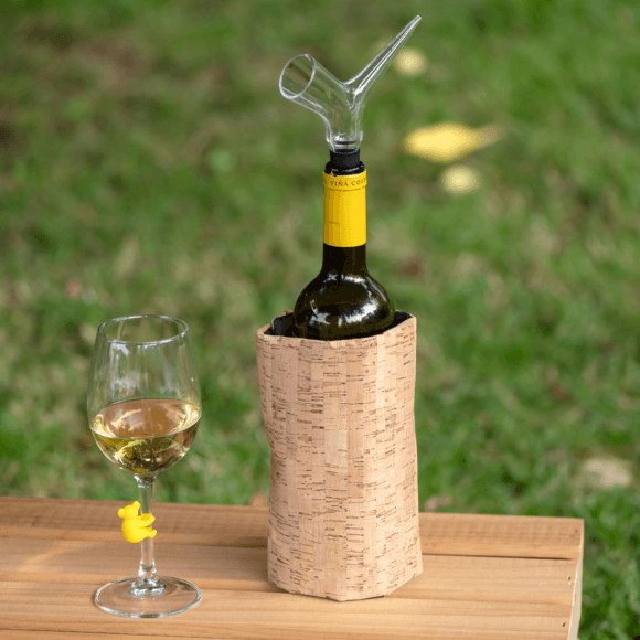 ワインボトルクーラーにはエコ素材として知られるコルクとジュートを使用しています。どちらもワインと相性の良いデザインで、見た目からもワインを楽しめます。