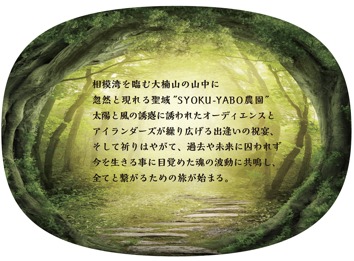 神奈川県横須賀にある大楠山の自然豊かなショクヤボ農園では、自然農法で自家栽培された野菜料理を森のレストランで楽しんだり、自然と一体になれる会場で心豊かな体験をしていただけます。開催期間中はアイランダーズスペシャルメニューをショクヤボレストランでご提供します。