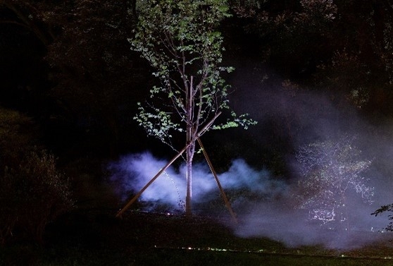 内容:五代将軍・徳川綱吉の長女である鶴姫がかつてお花見を楽しんだとされる吟花亭の跡では、しだれ桜をライトアップし、その周りの掛雲峯(くもかかるみね)に、定期的に流れ出るフォグ(霧)とライトで、「光の陣幕」を演出します。
