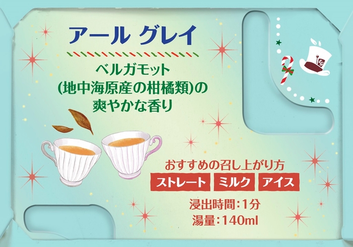 12月1日から24日までの期間、クリスマスに向けて毎日異なる紅茶やノンカフェイン ティーを楽しめる期間限定商品。昨年好評いただいた期間限定ブレンド「ホリデーティー」も入っています。