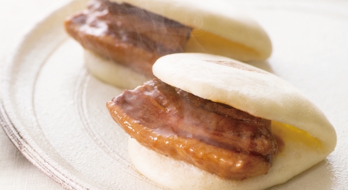 角煮を炊いた後しっかり冷やし込んで脂抜きし、独自の小麦粉の配合で作ったふわふわの生地に挟み込みました。1口食べると、甘くコクのある醤油の風味と、ほんのり甘い生地が口の中で広がって溶けてしまう美味しさです。