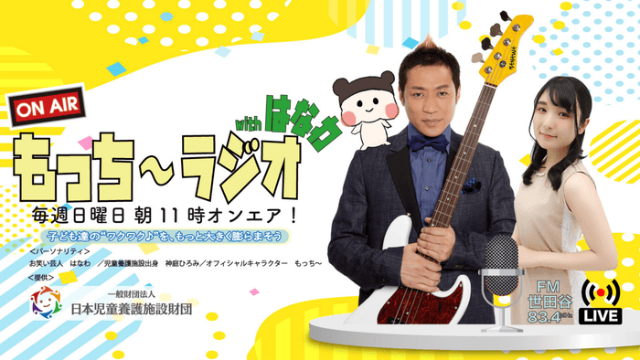 一般財団法人 日本児童養護施設財団の事務局長 本郷 暁洋(ほんごう あきひろ)こと『あっき~』と幼少期から施設で育ち現在は声優になる夢を目指している神庭(かんば)ひろみ等がパーソナリティを務める『ON AIR もっち~ラジオ』(エフエム世田谷にて毎週火曜日朝11時からオンエア)が、2022年8月7日(日)をもってリニューアルし、放送日時が毎週日曜日朝11時にお引越しします。