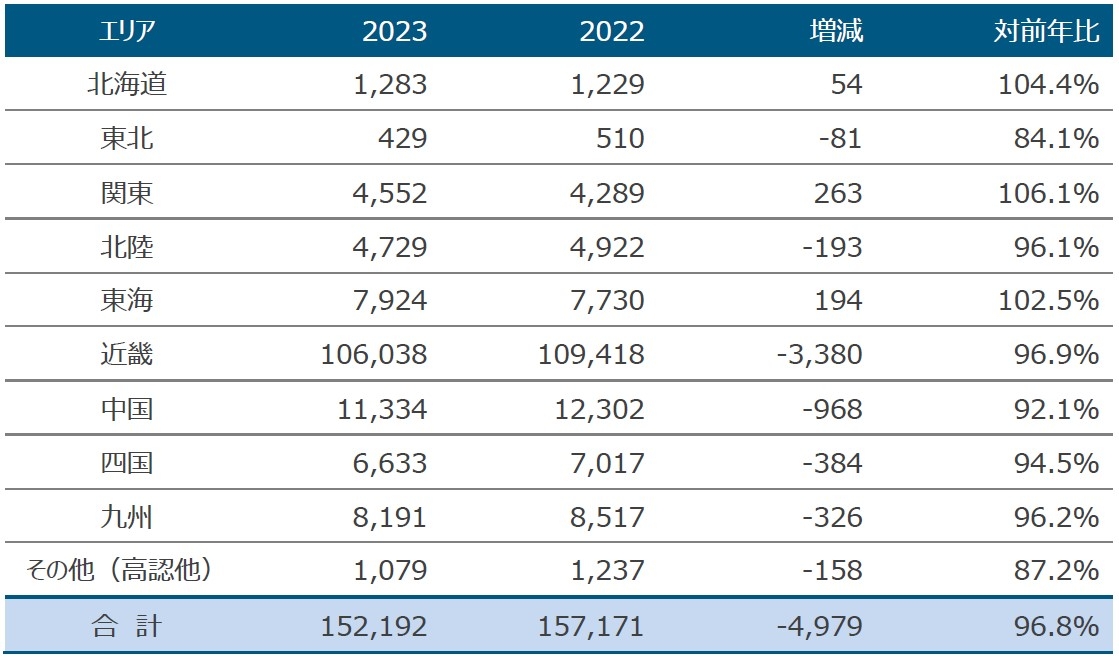 ●地域別では、北海道(104.4%)、関東(106.1%)、東海(102.5%)で前年比が増加